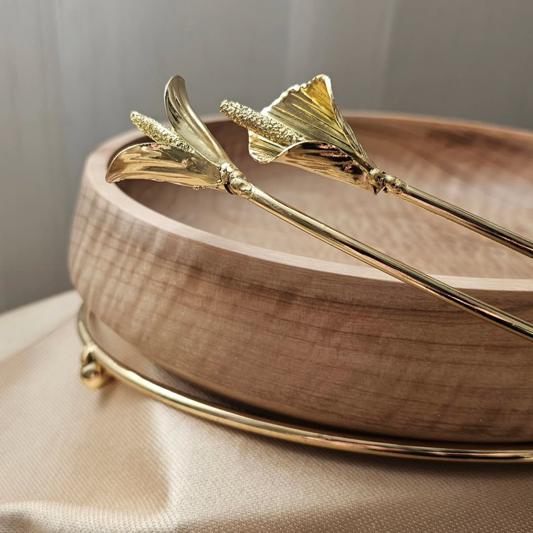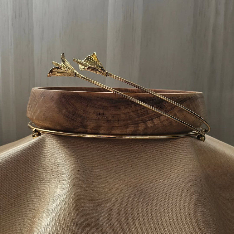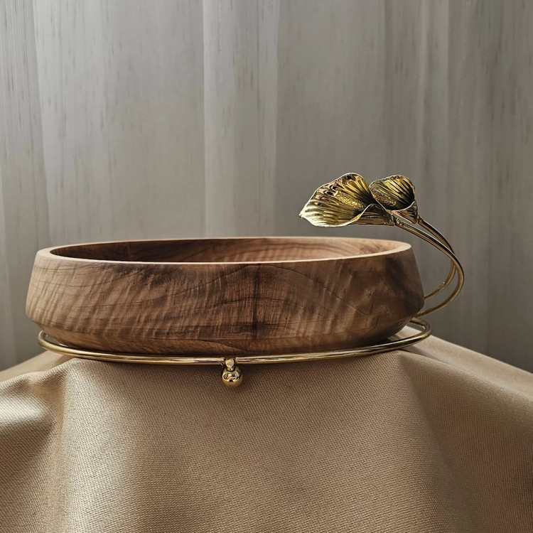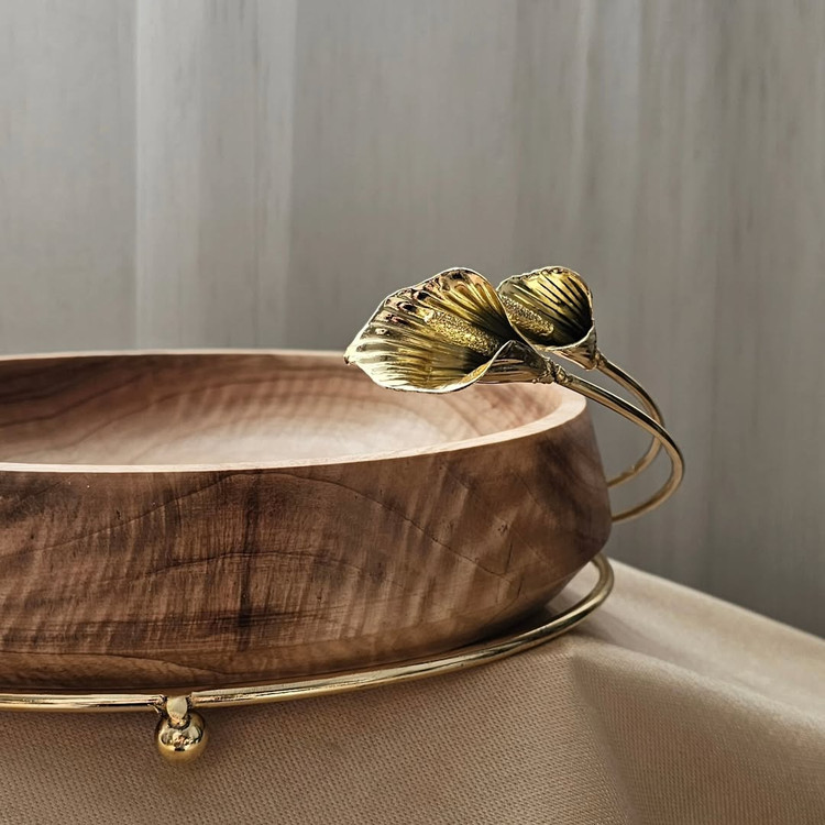 میوه خوری چوب و پایه فلزی با طراحی گل لیلیوم و ابعاد ۳۰ سانتی متر.