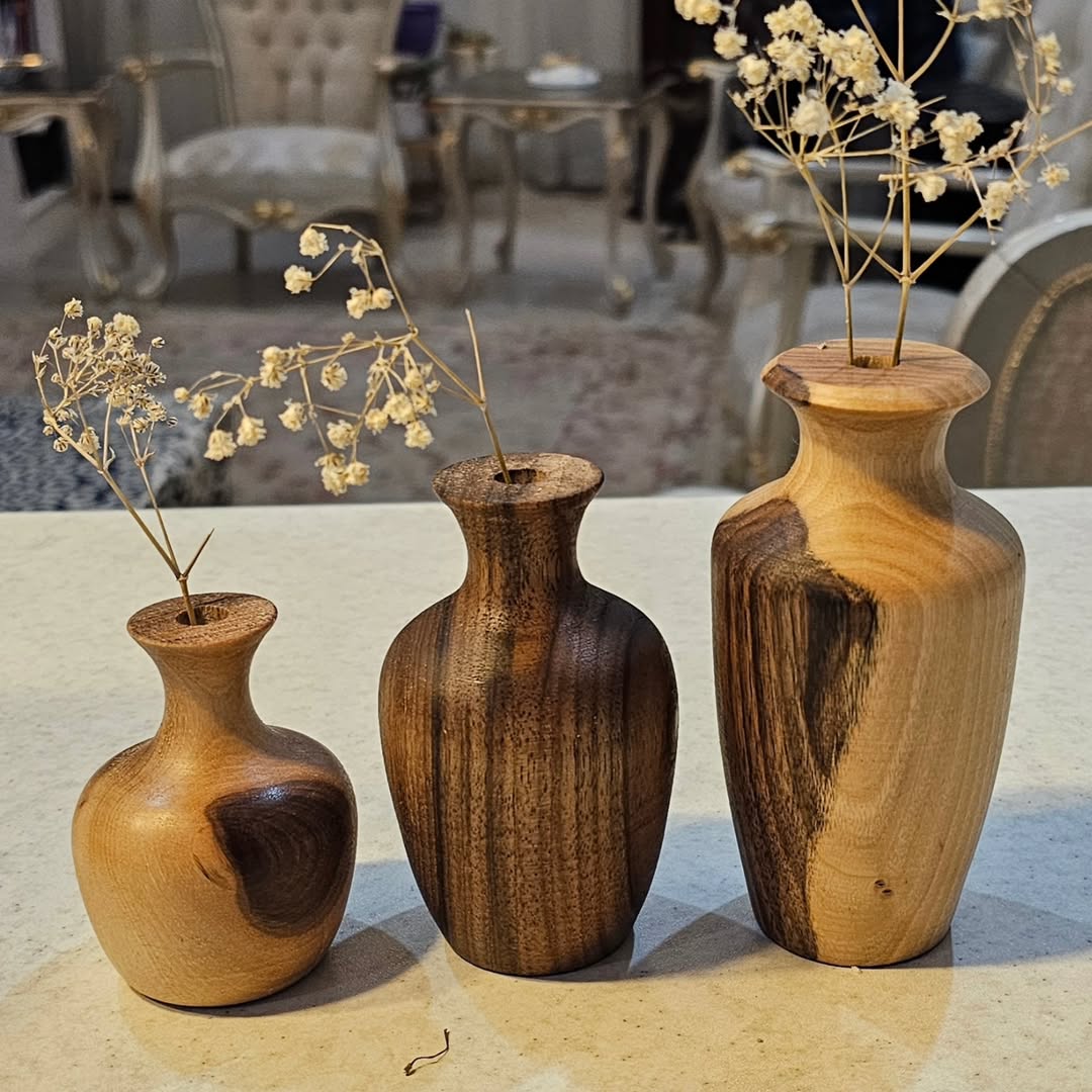 گلدانهای مینیمال و مینیاتوری سه عددی از چوب گردو با احترام