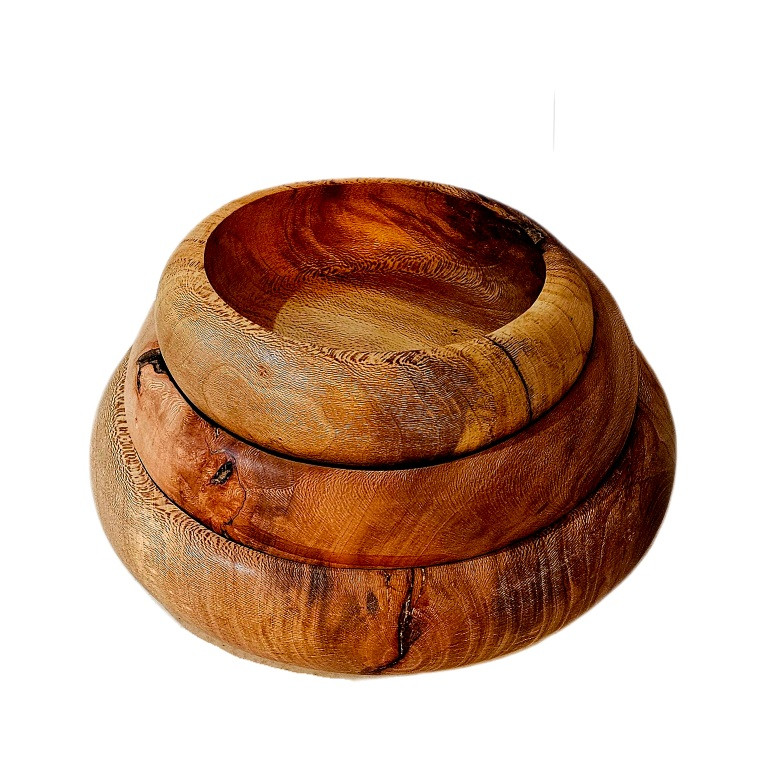 سرویس سه پارچه خمره ای ساده چوبی از بهترین نوع چوب چنار سرخ توسط اساتید خراط ایرانی ساخته شده است. دارای سه پارچه به ترتیب شکلات خوری شیرینی خوری و میوه خوری در اندازه ای به ترتیب ۲۰ سانت ۲۵ سانت و ۳۰ سانت می باشد