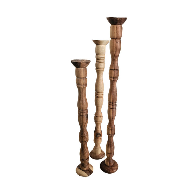 جاشمعی طرح پایه دار ساده از بهترین نوع چوب گردو تهیه گردیده است مجموعه سه عددی در سایزهای ۷۵ و ۸۵ و ۹۵ کنار سالنی تهیه گردیده است این مجموعه توسط اساتید خراط ایرانی تهیه شده است